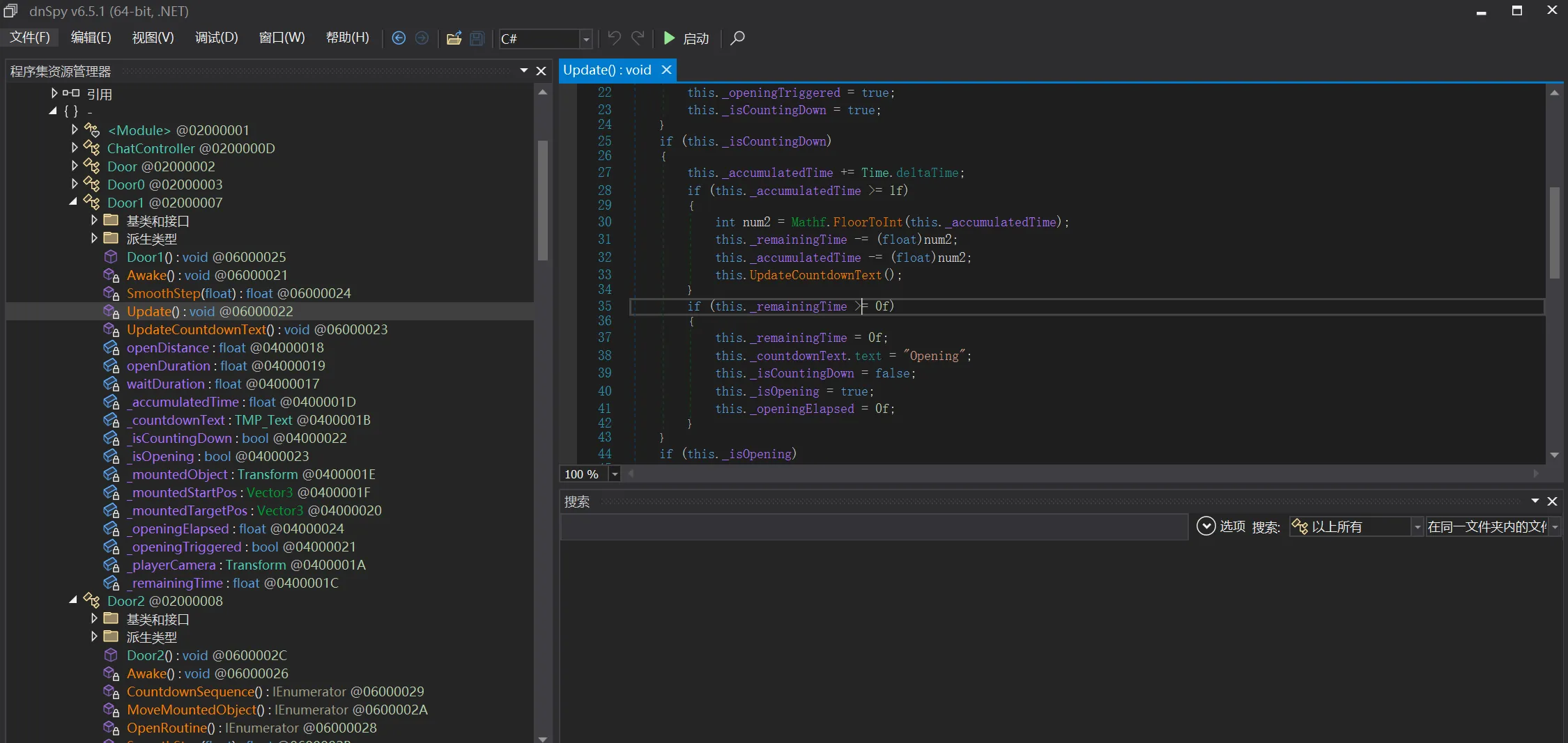 然后flag3这里是一个不会打开的墙。CE试了好久没想到办法,遂开始反编译。稍微搜索了一下得知dnSpy是很好的工具